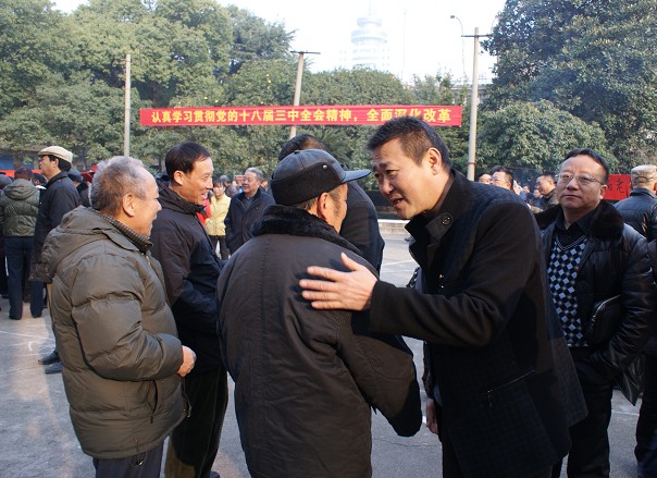 公司董事長兼總經理彭瑞華與老同志親切交談